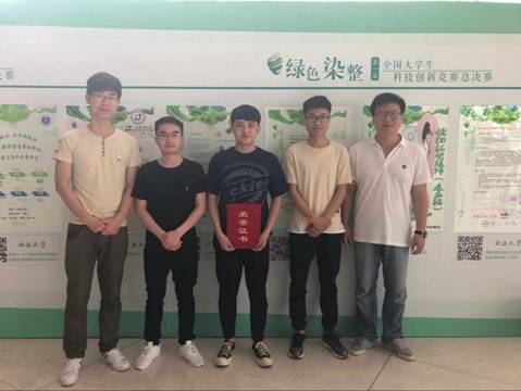 由张晓莉、王艳老师指导,轻化15级杨厚裕、李金召、王聪、孙洋洋团队的作品《激光仿蜡染和拔染的新工艺》获得二等奖,由黄鑫、岳献阳老师指导,轻化16级陈若瑄、李增贝、轻化17级韦兴利、张治城团队的作品《印染废水阴离子染料和重金属离子快速检测试纸》、由张晓莉老师指导,轻化14级马世杰、轻化17级李勇、李红晨、李风珍团队的作品《毛绒玩具类超疏水面料开发》、以及由杨红英、欧康康老师指导,轻化16级董丽瑶、轻化研究生肖培、轻化14级韩倩迪团队的作品《绿色环保型植物染料印花蚕丝织物的设计开发》分别获得三等奖。