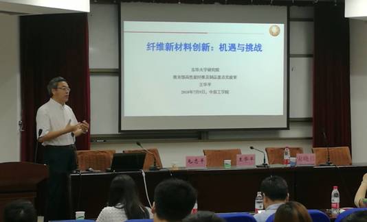 2018年7月9日,东华大学毛志平教授和王华平研究员应邀走进弘德讲坛,为公司师生分别作了题为“生态染整技术现状与展望”与“纤维新材料创新-机遇与挑战”的精彩学术报告。公司科技处处长宋晓炜教授主持,365在线体育投注官网、材化公司、服装公司等相关专业教师、研究生、本科生聆听了报告。