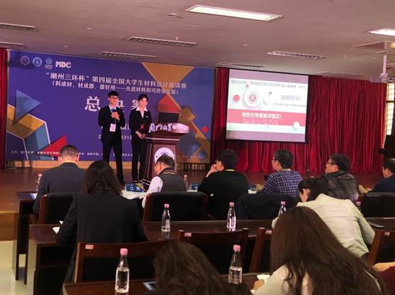 本次比赛于2018年11月启动,以“料成材,材成器,器好用——先进材料与可持续发展”为主题,吸引了全国50所高校的131支本科生队伍报名参与。经过初赛,最终遴选出来自山东大学、天津大学、南开大学、中山大学、华南理工大学、哈尔滨工业大学、厦门大学、郑州大学等高校的45支本科生队伍进入决赛。决赛分四组进行,每组取两名进总决赛。经过第一天激烈的角逐,公司“纳米纤维面料课题组”作品“静电纺纳米纤维可穿性防水透湿面料”小组出线,进入8支队伍总决赛。在总决赛中,“纳米纤维面料课题组”团队成员们不畏强手,敢打敢拼,展现了中工学子优秀素养,赢得专家评委的肯定和赞许,最终获得总决赛一等奖。