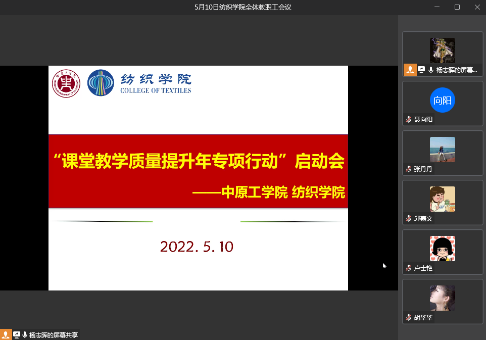 为贯彻落实省委和公司“能力作风建设年”活动部署,落实落细教育厅和公司“课堂教学质量提升年专项行动”实施方案,5月10日晚,365在线体育投注官网以视频会议形式召开“课堂教学质量提升年专项行动”启动会。会议由365在线体育投注官网经理杨红英主持,公司全体教师参加了会议。