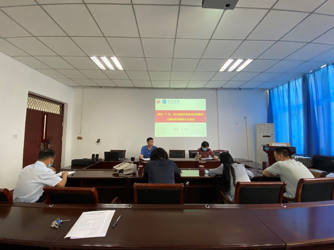 5月27日,365在线体育投注官网领导班子在龙湖校区召开关于深刻汲取“7.20”特大暴雨灾害追责问责案件教训以案促改专题民主生活会。会议由党委书记杨磊主持,经理杨红英、副书记杨方超、副经理郭正、副经理陈彩虹、副经理卢士艳参加了会议。
