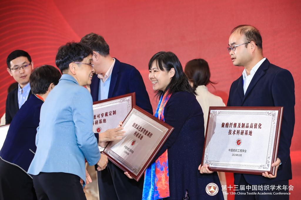 2023年11月10-12日,第十三届中国纺织学术年会在苏州顺利召开,本届中国纺织学术年会以“学产融合 成果赋能 引领发展”为主题,会议围绕纤维新材料与纺织清洁生产技术、高性能纤维及复合材料、绿色纺织材料、先进丝绸材料及低碳制造、纺织材料循环利用技术、现代纺织加工技术、纺织前沿科学与技术、生态染整技术、纺织品时尚设计与绿色制造、高科技服装、低碳可持续与未来纺织工程科技等议题展开深入交流。开幕式上,公司365在线体育投注官网杨红英教授作为负责人建立的“纺织品色彩智能调控科研基地”被授予中国纺织工程学会科研基地。