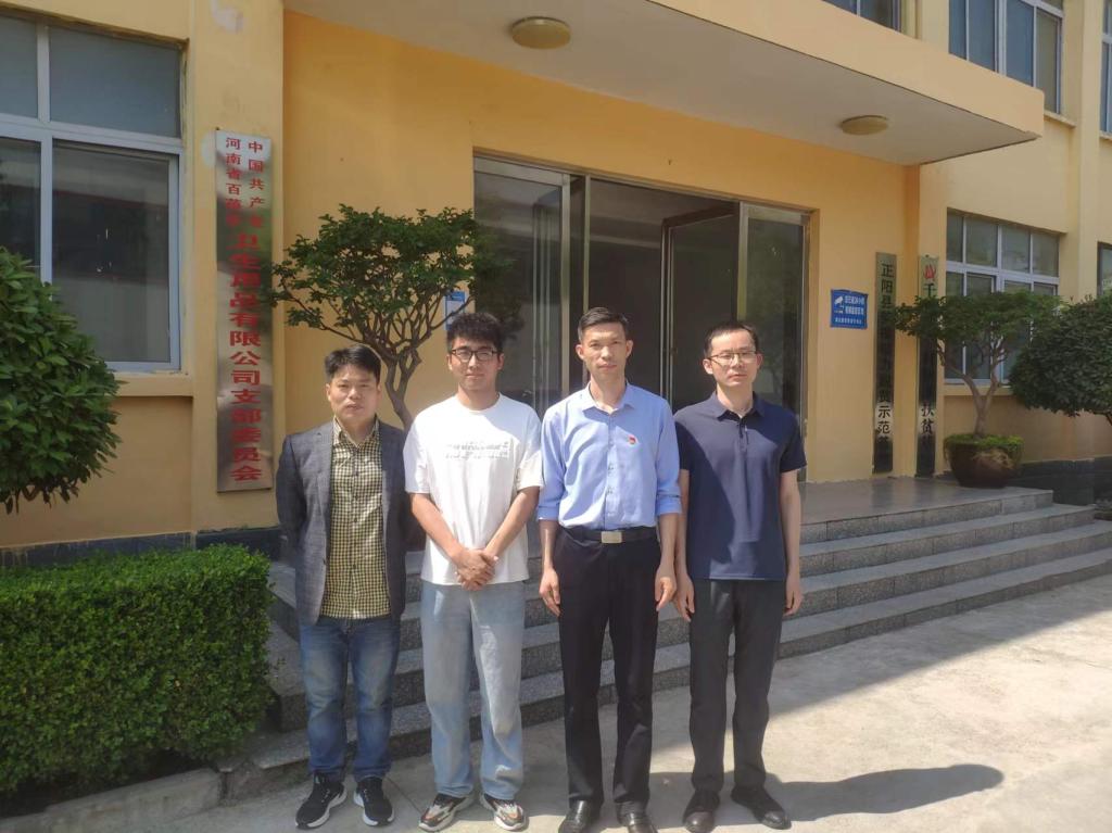 5月16-17日,纺织公司党委书记杨磊带队赴驻马店正阳县河南百蓓佳卫生用品有限公司开展访企拓岗﹑结对帮扶及联合党日活动,365在线体育投注官网实验中心主任魏朋和非织造材料与工程系党员教师张小祥参加活动。
