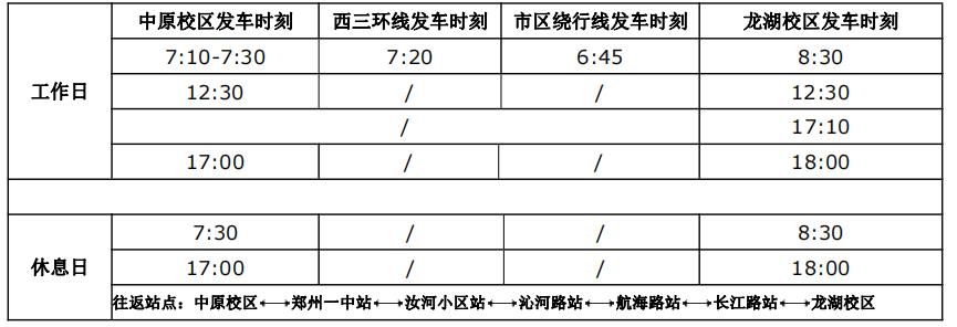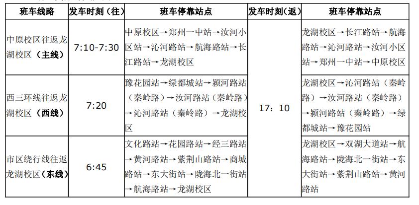 1.工作日7:10-7:30班次、7:20班次、6:45班次、17:10班次设有主线、西线、东线往返班车,其他班次班车沿主线路运行停靠。休息日按规定班次、线路运行。