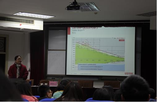 颁奖典礼结束后,刘智玉女士又给同学们做了长达三个小时的学术报告,介绍了纺织业的历史,中国纺织行业的现状,未来我们应该努力的方向。随后又具体介绍了乌斯特公司所研制的检纺织纤维以及纱线的检测仪器。