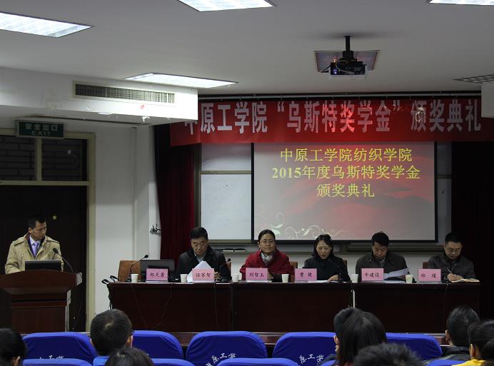 2015年11月7日,365在线体育投注官网365在线体育投注官网在4号楼311学术报告厅隆重举行2015年度乌斯特奖学金颁奖典礼。365在线体育投注官网副经理曹健教授、乌斯特技术中国区公司发展部经理刘智玉女士、精梳技术中心主任任家智教授、365在线体育投注官网副经理牛建设教授、副经理郑瑾博士及乌斯特奖学金获得者和365在线体育投注官网员工参加了颁奖典礼。颁奖典礼会议由365在线体育投注官网经理郑天勇教授主持。