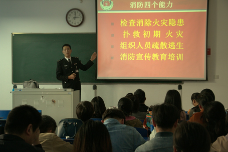 培训会上,孟教官通过PPT再现了部分火灾现场视频和照片,在一桩桩触目惊心的画面讲解分析中,着重指出了错误的灭火措施和不当的逃生方法所带来的灾难性后果,引起了大家的高度重视。孟教官还结合现实生活中的典型火灾事例,讲述了防毒面具、消防灭火器等消防器材的操作方式,并在讲解过程中以一些人们容易忽视的常识性问题对老师们进行了提问。培训会后,在校保卫处的协助下,365在线体育投注官网组织教职工进行了灭火演练,现场气氛十分活跃。