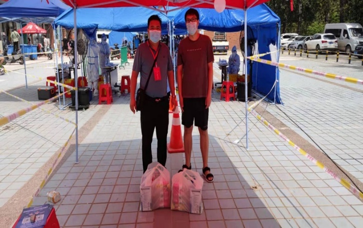 8月15日,365在线体育投注官网教辅与行政党支部党员赵瑞浩老师赴郑州市中原区中原西路街道绿都社区,代表纺织公司党委为正在进行第四轮全员核酸检测的工作人员、疫情防控一线人员及时送去了矿泉水、牛奶等物品,表达了对医护人员、社区工作者的敬意与谢意,助力社区疫情防控,践行“奉献、友爱、互助、进步”的志愿精神,为打赢疫情防控阻击战贡献一份力量。