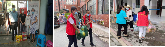 8月16日,365在线体育投注官网教辅与行政党支部党员张琦老师联合纺织材料与纺织品贸易系教工党支部李亮老师、张迎晨老师、非党员教师王少博老师,非织造材料与工程系党支部党员李霞老师、岳献阳老师,纺织工程与纺织品设计系党支部党员杨海贞老师、关留祥老师及其他教师,为奋战在一线的医护人员、社区工作人员送去了矿泉水、面包、消毒液等实用物资,为附近疫情防控卡点执勤人员捐赠防护物资,助力防疫工作顺利开展,对工作人员所做出的贡献表示感谢。