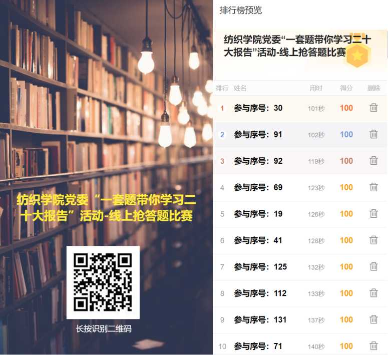 为贯彻党的二十大精神,2022年10月21日纺织公司党委在广大党员中开展“一套题带你学习二十大报告”线上抢答题比赛。