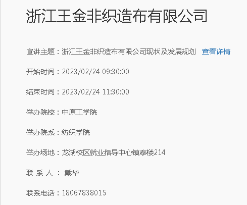 上一条:中维化纤股份有限公司招聘信息 下一条:衣臻时装10月27日校园招聘信息
