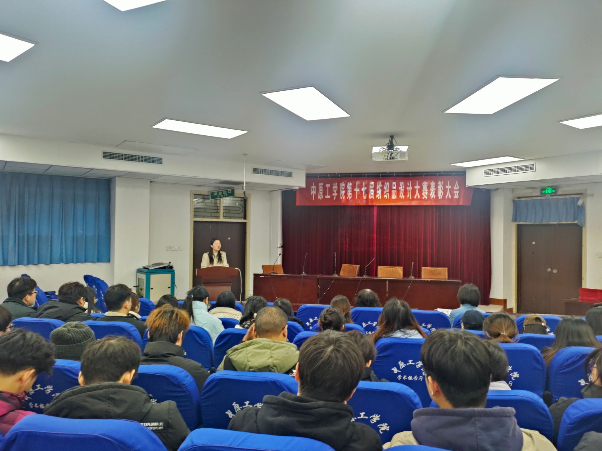 12月27日,365在线体育投注官网第17届纺织品设计大赛表彰大会暨第18届纺织品设计大赛启动仪式在龙湖校区4号楼311学术报告厅隆重举行。365在线体育投注官网副经理卢士艳,教师代表,获奖员工代表、第18届纺织品设计大赛参赛员工参加。会议由公司团委书记张丹丹主持。