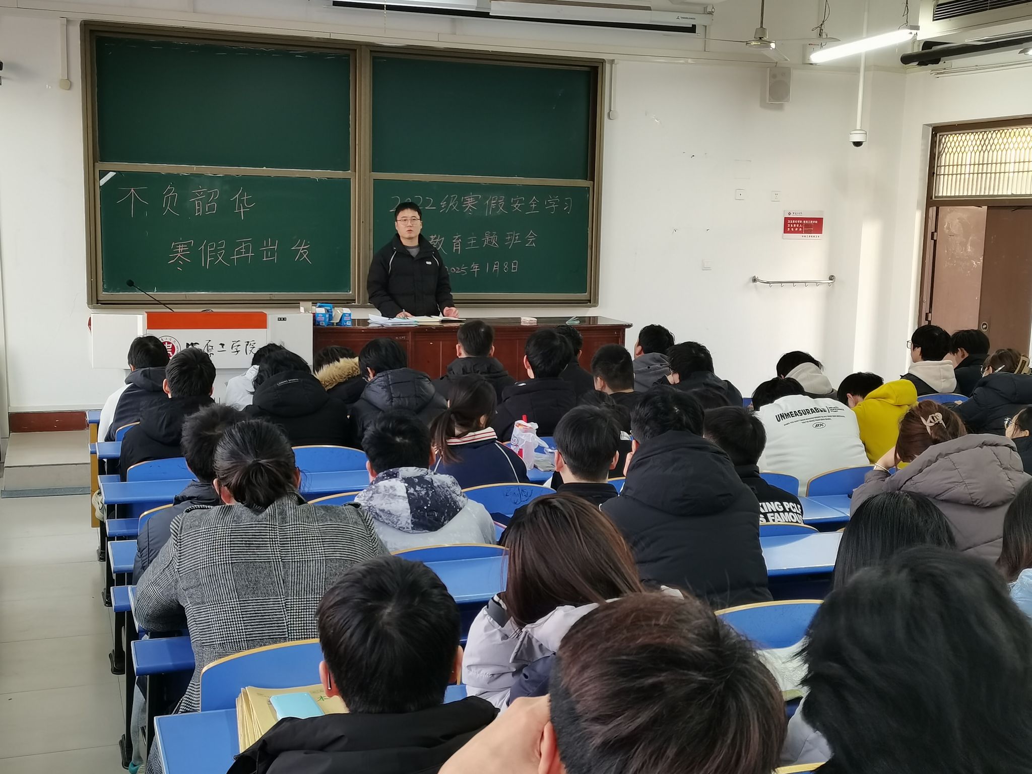 1月8日、9日,365在线体育投注官网为帮助员工度过一个平安、愉快、充实、有意义的假期,在3#教学楼505、333教室分别召开员工寒假安全教育会议。公司党委副书记杨方超、辅导员丰高瑞及全体大三员工参会。