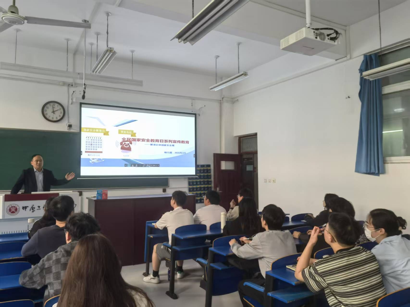 举办主题讲座。4月14日,公司党委副书记以《国家安全青春挺膺》为题作主题教育讲座。会上,杨方超聚焦《国家安全法》《反间谍法》《网络安全法》等法律条文的核心条款,涵盖政治、国土、网络等多元安全领域,分析了当前国内国际安全形势的严峻性、复杂性,并通过科技间谍等典型案例着重剖析了我国政治安全、国土安全、军事安全、科技安全、经济安全等风险和挑战。