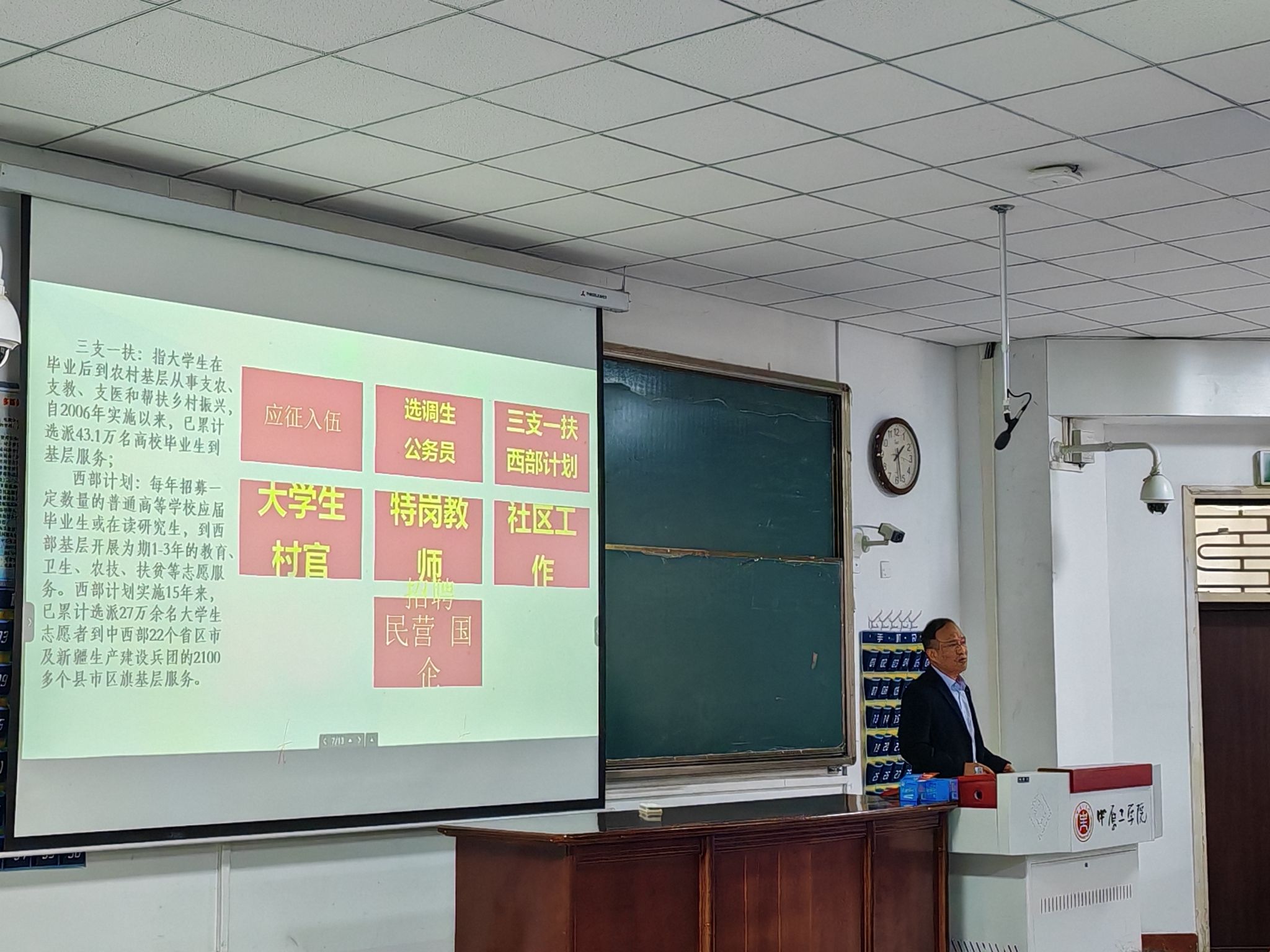 最后,杨方超详细介绍了三支一扶、西部计划、选调生、公务员、社区服务、特岗教师和征兵入伍等老员工就业优惠政策。