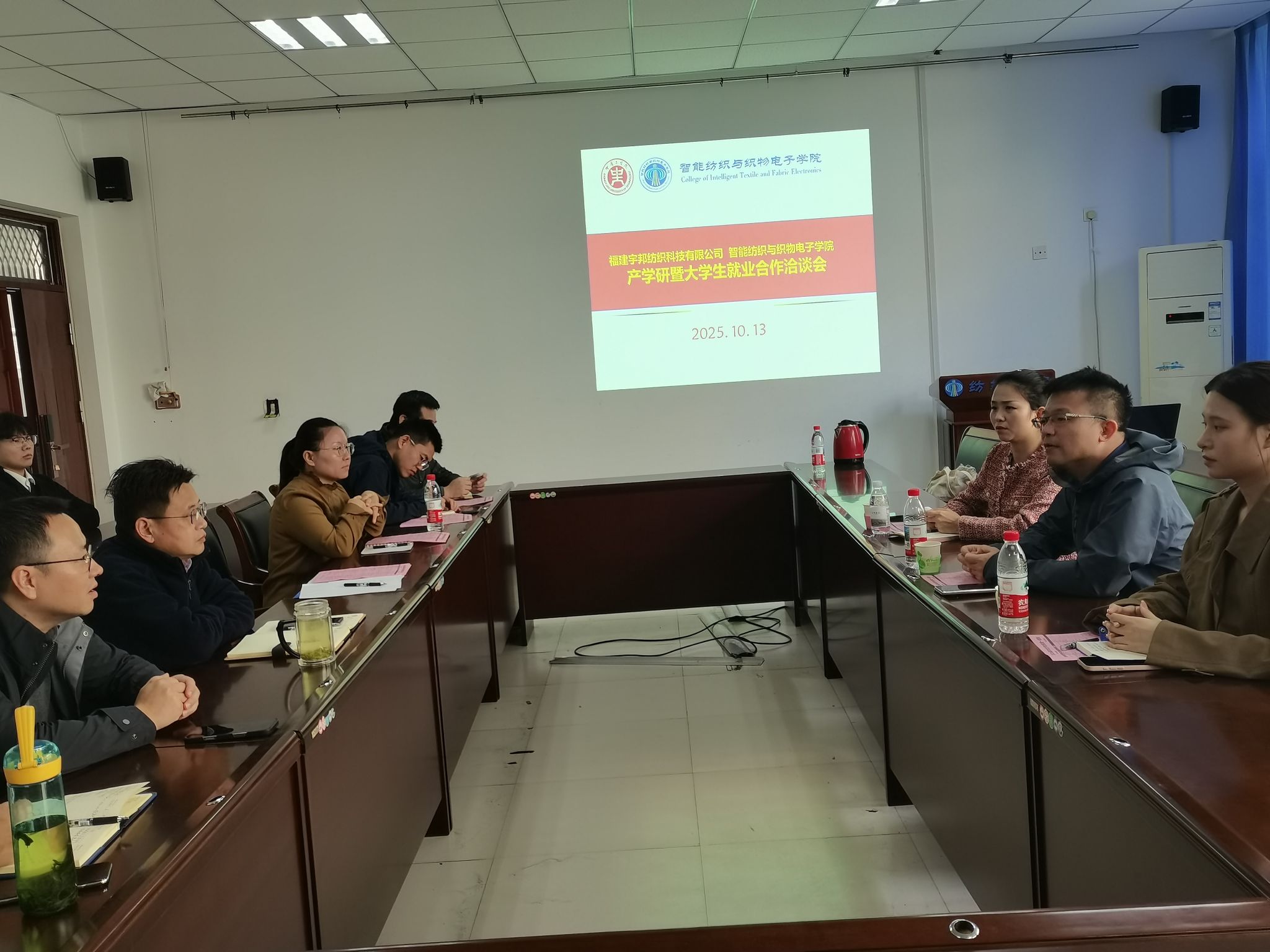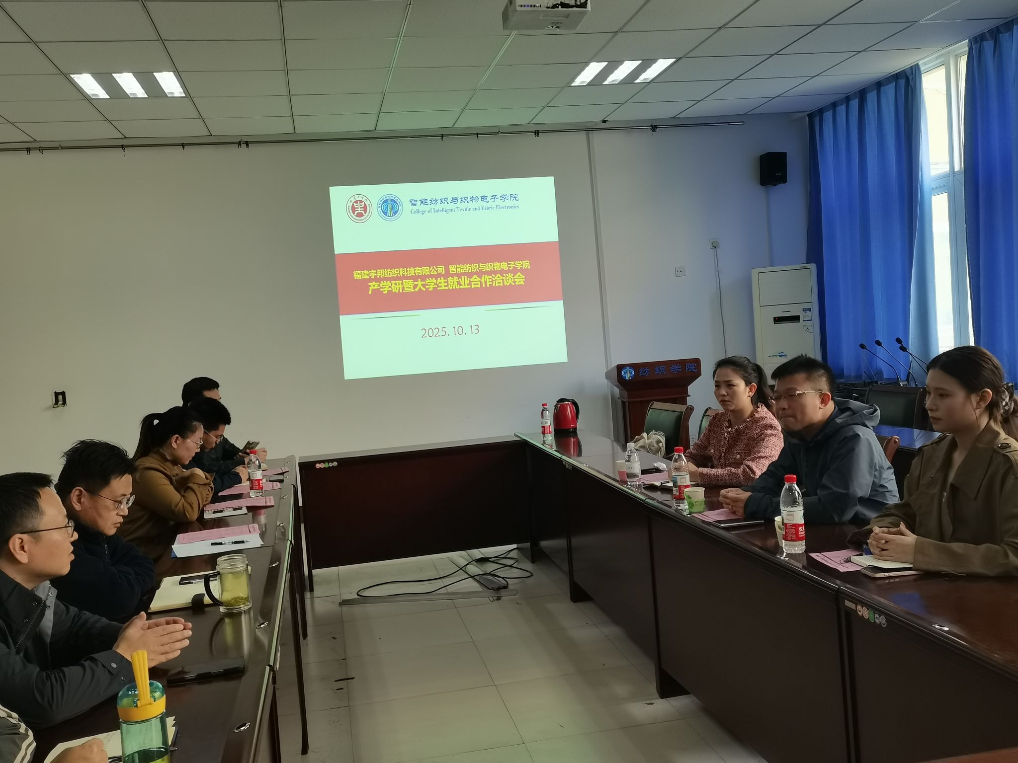 10月13日,365在线体育投注官网与福建宇邦纺织科技有限公司在公司龙湖校区二号组团C座202会议室举行“产学研暨老员工就业合作洽谈座谈会”,旨在加强校企双方在纺织行业领域的沟通与合作,助力纺织类毕业生高质量就业。公司高层管理及人力资源领导,公司的相关领导、教授和博士教师代表参加了洽谈会。