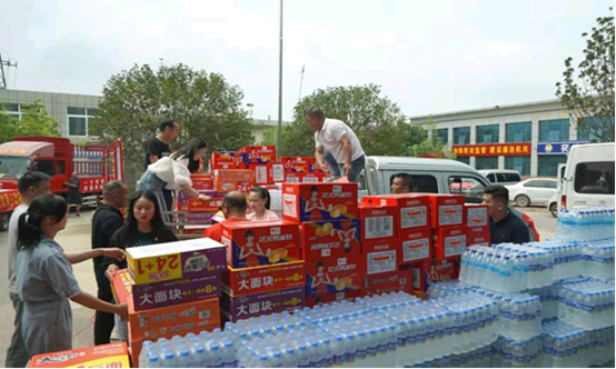 公司纺织183班于仕林同学,在村镇电力系统损坏,生活用水无法供给,田地毁坏,房屋受损,居民已经断水断电超过4天的情况下,积极投入到恢复建设,清晨和一众志愿者一起在乡政府装运物资,在危情时刻奋然投身家乡建设。