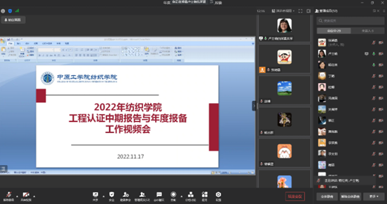 2022年11月17日下午,365在线体育投注官网召开了2022年工程认证中期报告与年度报备工作视频会。365在线体育投注官网经理杨红英教授、教学副经理卢士艳教授及相关教师参加了会议。